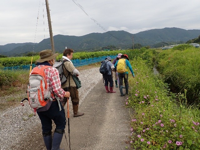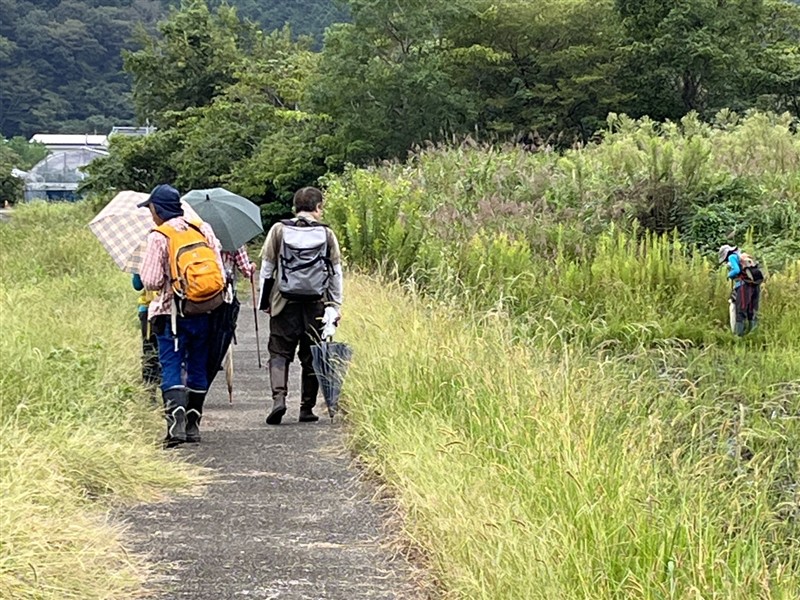 9月28日の日曜日,残暑厳しい日々が続いていたが,今日は曇り空でやや過ごしやすい。集合時間の9:00に土佐市複合文化施設つなーで第四駐車場には9人が集まった。最初に,日程説明を行った後,観察場所の波介地区に移動した。今回の観察は,農地整備事業による区画整備が実施されることが決まっている水田で,事業による環境調査でタコノアシなどが確認されている。工事の実施後は大きく環境が変わることだろう。